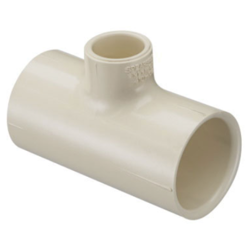 Spears® EverTUFF® Reducing Tee, Fitting/Connector Type: Tee, 1-1/4 x 1/2 x 3/4 in Nominal, Socket, 4-3/32 in Length, SCH 40/STD, 100 psi, Bushed, CPVC, Tan, 180 deg F, Domestic