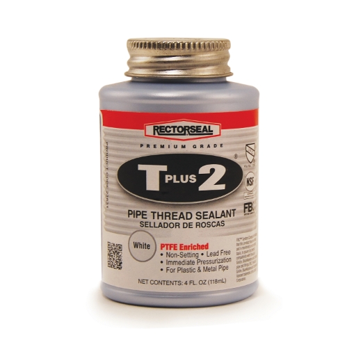 RectorSeal® T Plus 2® Pipe Thread Sealant, Multi-Purpose, Can Container, 1 pt Container, Resinous Base, White, Slight Odor/Scent, -40 to 125 deg F, 1.32 Specific Gravity, >300 deg F Flash Point, Bonds To: Metal, Plastic Piping, Iron, Galvanized Steel, Stainless Steel, Brass, Copper, Aluminum, Polyethylene, Reinforced Fiberglass, PVC, ABS and CPVC
