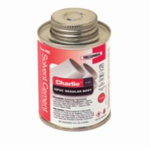 RectorSeal® Charlie™ Solvent Cement, Regular Body, 0.5 pt Container, For Use With: CPVC Pipe Tubing and Socket Type Fittings, Orange, Pungent Odor/Scent, Composition: Methyl Ethyl Ketone, Tetrahydrofuran, Cyclohexanone, Acetone, 1440 min Drying, Fast Setting, 40 to 1200 deg F