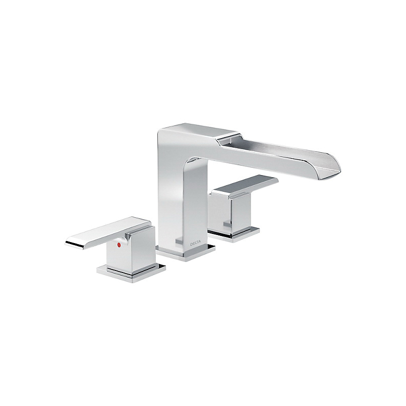 DELTA® T2768 Roman Tub Trim, Ara®, 18 gpm Flow Rate, 10 to 16 in Center, Polished Chrome, 2 Handles, Function: Traditional, Domestic