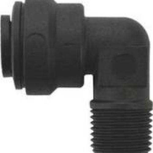 John Guest® Fixed Elbow, 90 deg Elbow Fitting/Connector, 3/8 in Nominal, NPTF End Style, 60 psi Pressure, 140 deg F, Polypropylene, Black