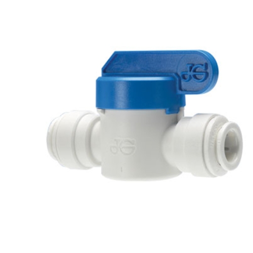 John Guest® Shut-Off Valve, Straight, Series: PP Series, 1/4 in Nominal, Tube OD End Style, 4 bar Pressure, 60 deg C, Polypropylene Body, Black, Domestic/Import: Import