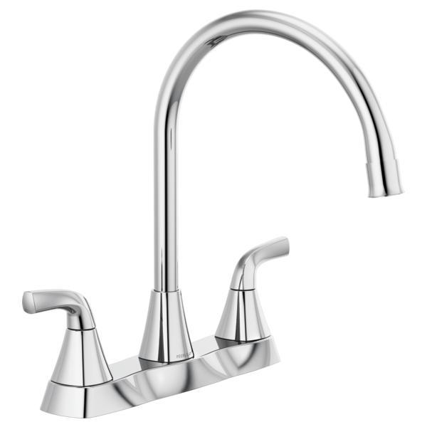 Peerless® P2935LF Parkwood™ Kitchen Faucet, Commercial/Residential, 1.5 gpm Flow Rate, 8 in Center, 360 deg High-Arc Swivel Spout, Polished Chrome, 2 Handles, Import