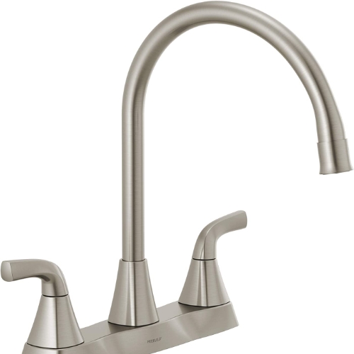 Peerless®, P2935LF, Kitchen Faucet, Parkwood™ Collection, 1.5 gpm Flow Rate, 8 in Center Distance, 360 deg High-Arc Swivel Spout, 8 in Spout Reach, 6-3/4 in Spout Height, Lever Handle, 2 Handles, Side Spray(Y/N): No, 3 Faucet Holes, 1/2-14 Connection, Male NPSM Connection, 2-1/8 in Maximum Deck Thickness, Deck Mounting, Ceramic Cartridge, 10.63 in L x 13.5 in W x 12.5 in H Dimensions, Metal/Brass, Polished Chrome, Import, Commercial/Residential